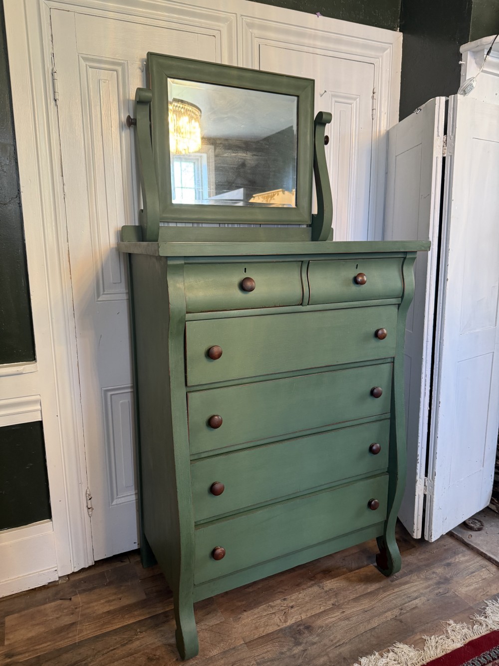 Chest of Drawers w/ Mirror Miss Mustard Seed's Milk Boxwood Paint w/ clear wax
